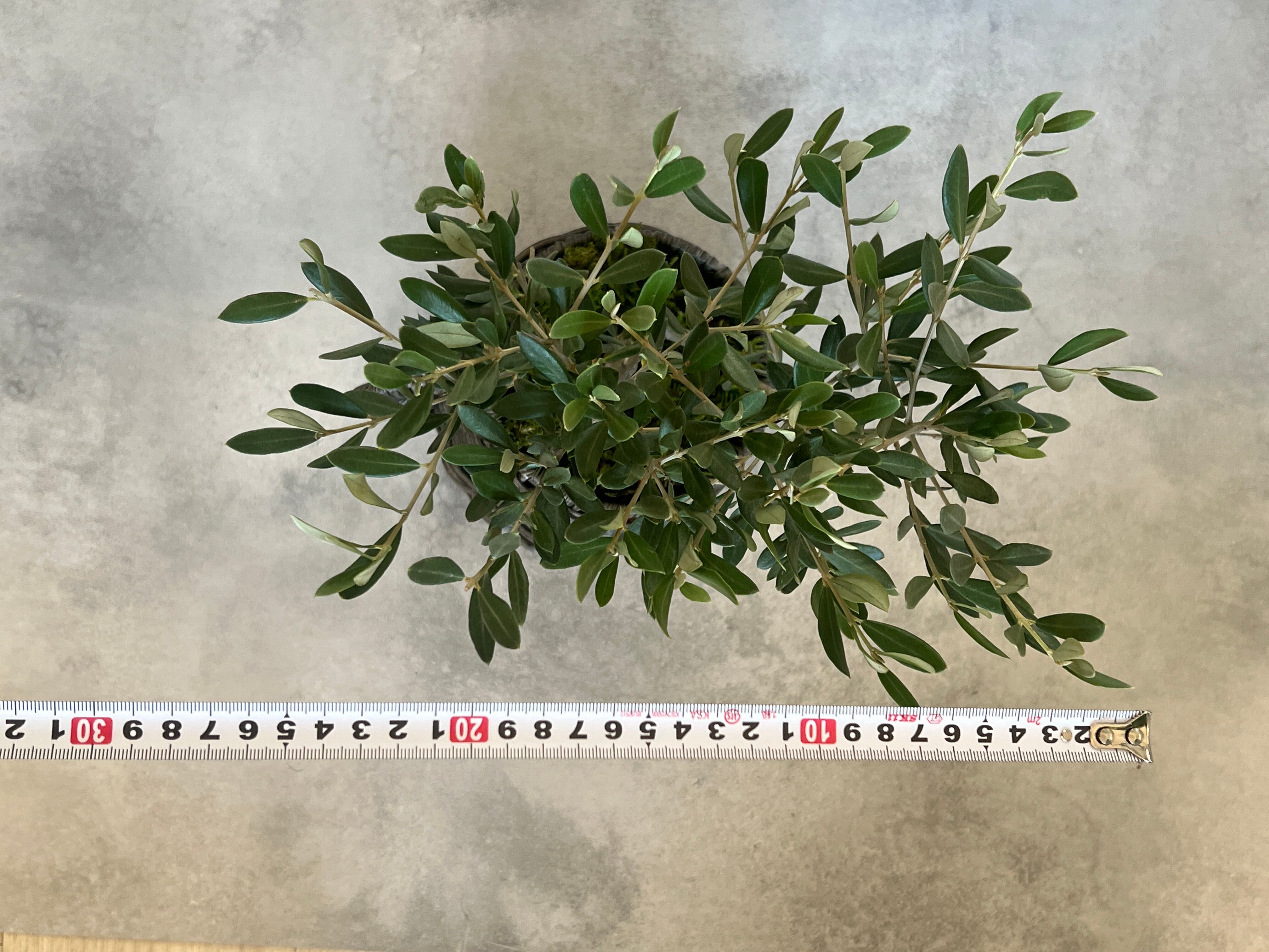背が低いのに枝ぶりや葉の付きが良く、横に広がるシルエット。幹の太さもしっかり、低重心で大好きなスタイルのオリーブです。 お外はもちろん、家の中でも大丈夫です。